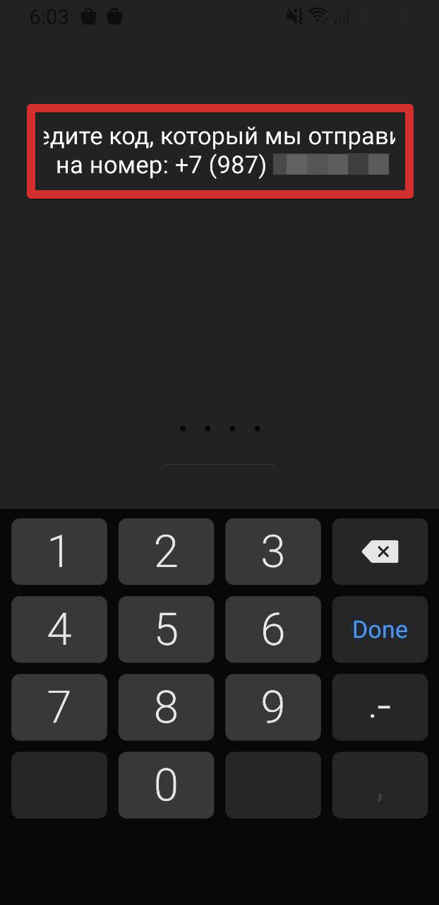 6. На указанный номер придёт SMS-сообщение с верификационным кодом.